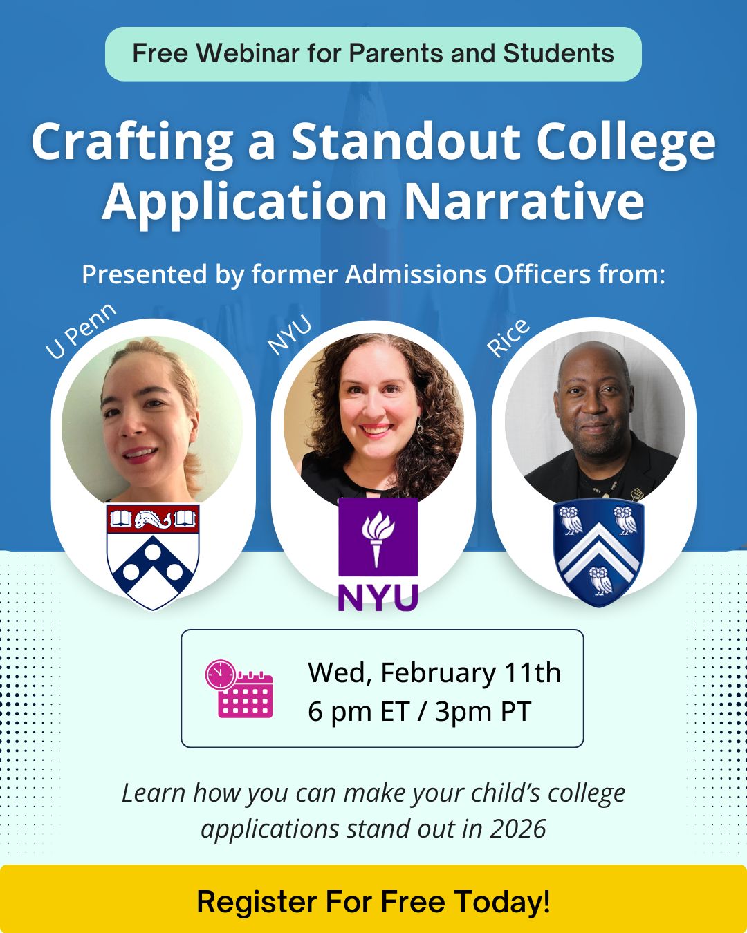 Calling all juniors – Prepare for college admissions with a strategic, year-long plan built specifically for you! The Junior Jumpstart Package boosts your admissions chances by strengthening your profile throughout the rest of grade 11 and providing individualized support through every step of the application process.