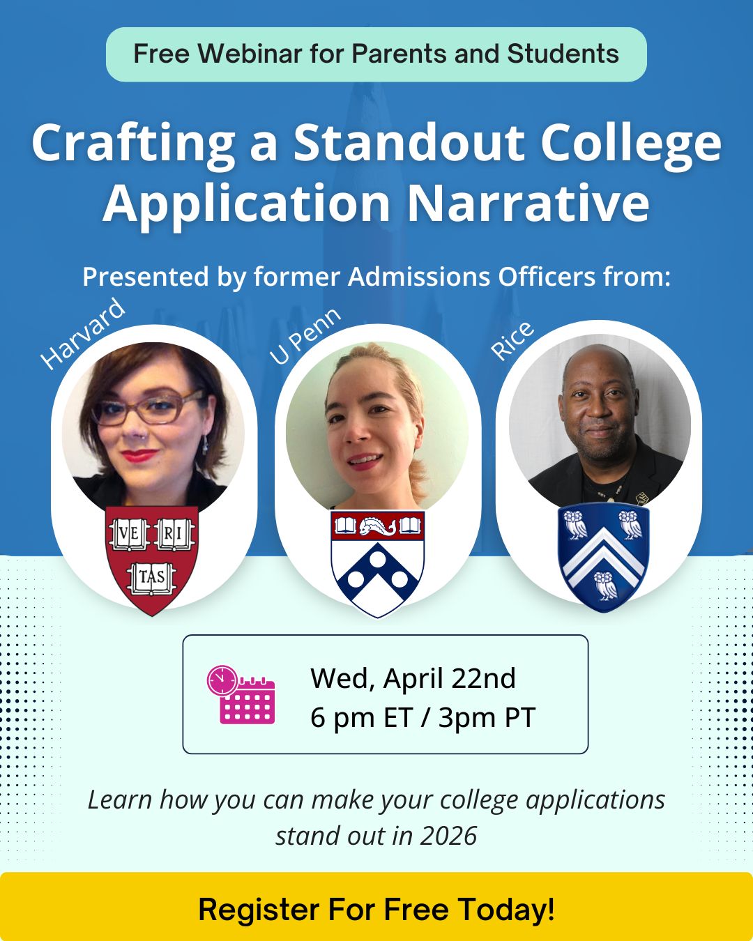 🎓Featuring a Panel of Former Admissions Officers from: